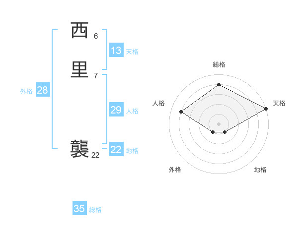 西里 襲さんの総格は35画の4点!