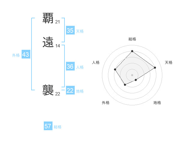 覇遠 襲さんを姓名の画数から五運を鑑定