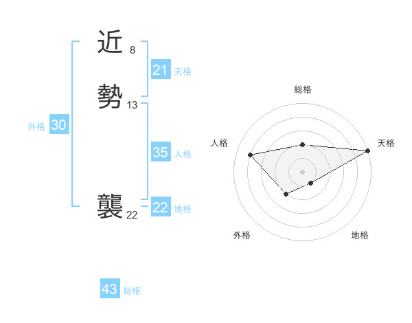 近勢 襲さんの天格は21画の5点!