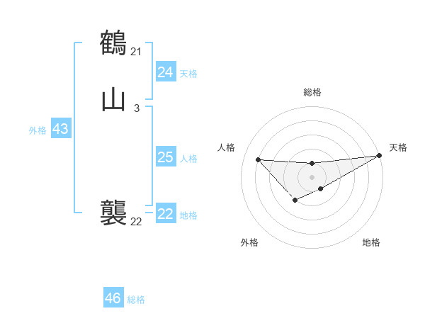 鶴山 襲さんの天格は24画の5点!