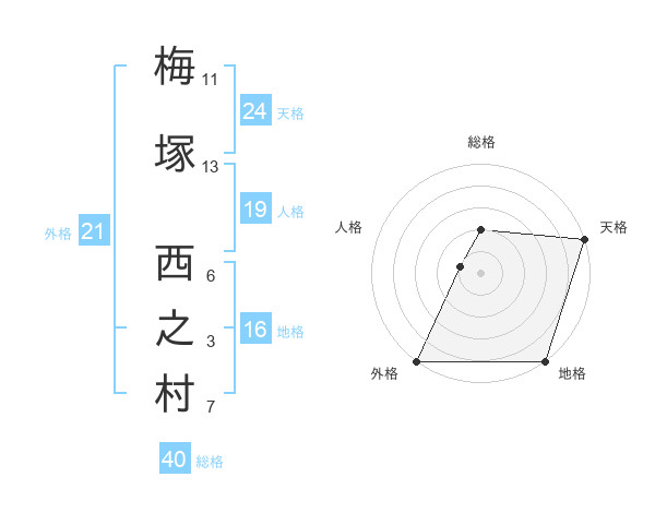 梅塚 西之村さんを姓名の画数から五運を鑑定