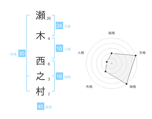 瀬木 西之村さんを姓名の画数から五運を鑑定