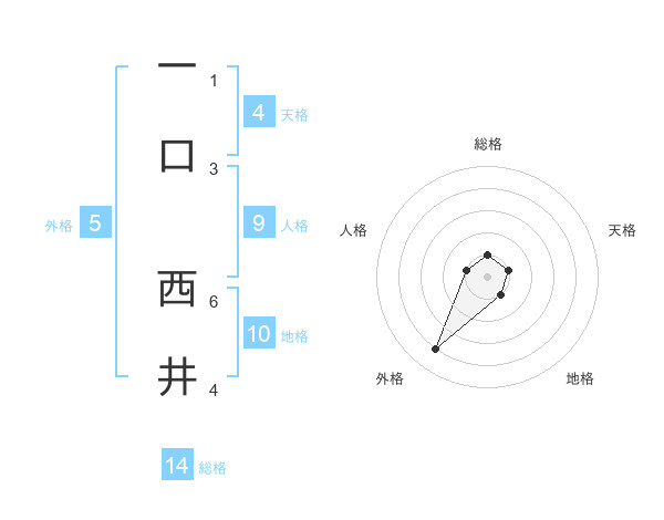 一口 西井さんの地格は10画の1点!