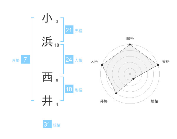 小浜 西井さんの総格は31画の5点!