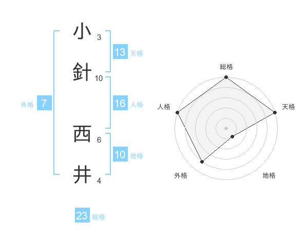 小針 西井さんの総格は23画の5点!