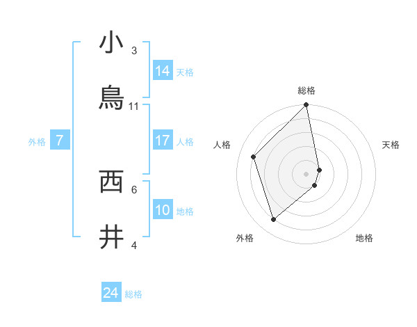 小鳥 西井さんの総格は24画の5点!