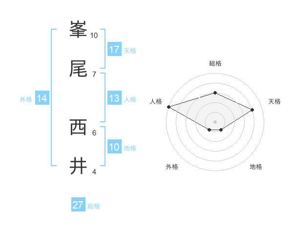 峯尾 西井さんの天格は17画の4点!
