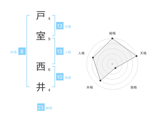 戸室 西井さんの総格は23画の5点!