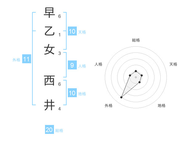 早乙女 西井さんを姓名の画数から五運を鑑定