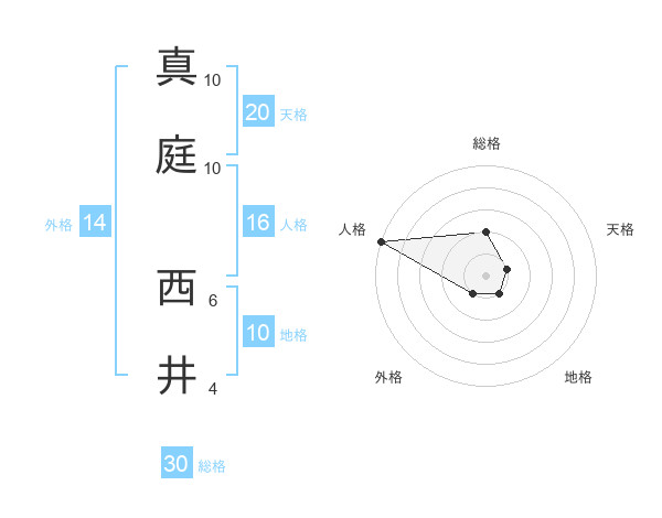 真庭 西井さんの総格は30画の2点!