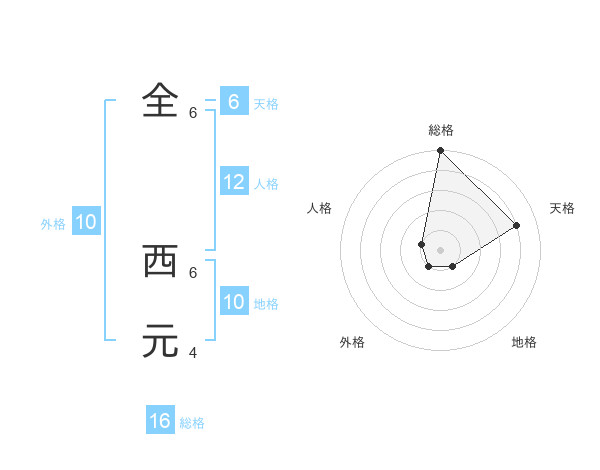 全 西元さんの天格は6画の4点!