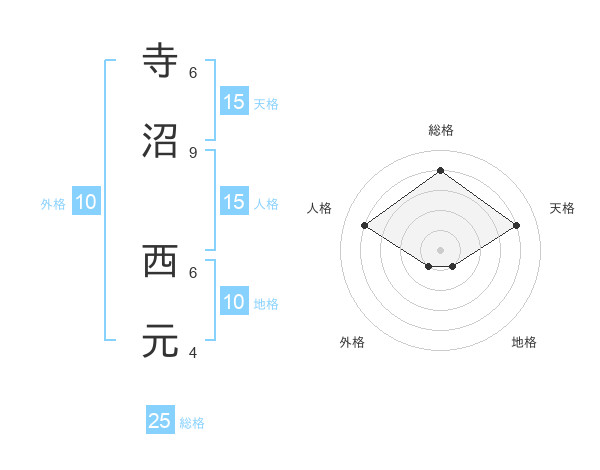 寺沼 西元さんを姓名の画数から五運を鑑定