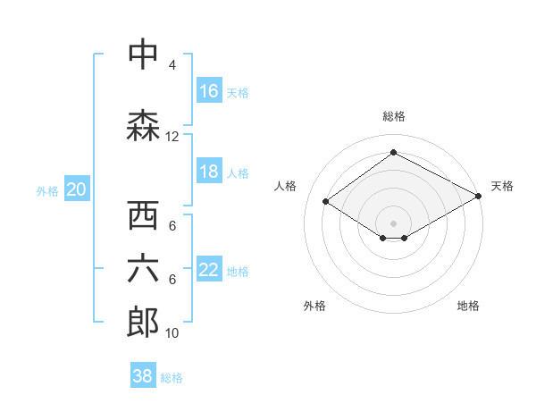 中森 西六郎さんの総格は38画の4点!