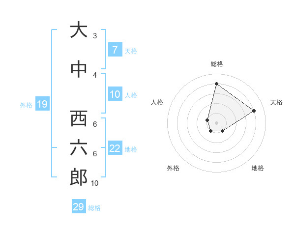 大中 西六郎さんを姓名の画数から五運を鑑定