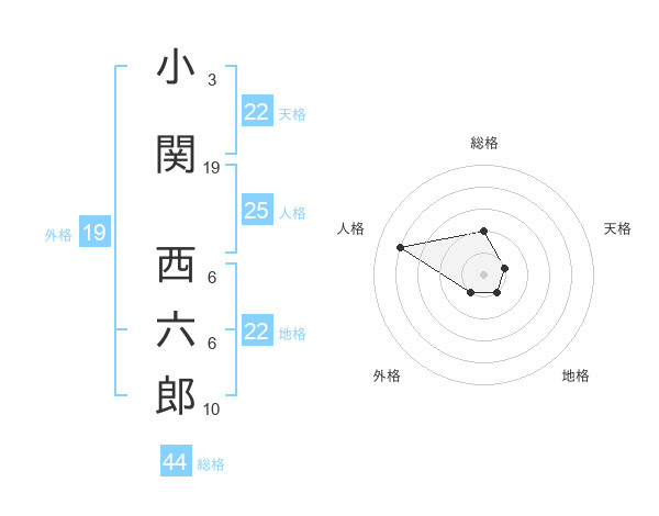 小関 西六郎さんを姓名の画数から五運を鑑定