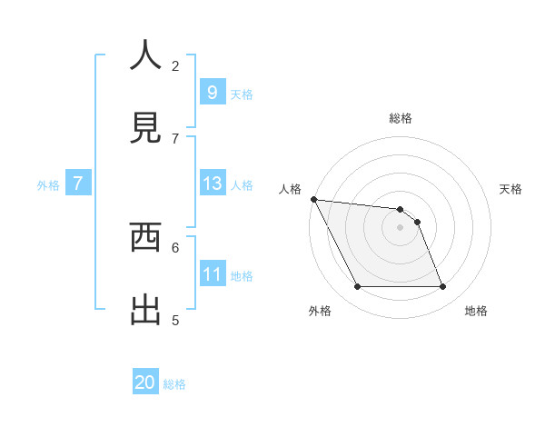 人見 西出さんの総格は20画の1点!