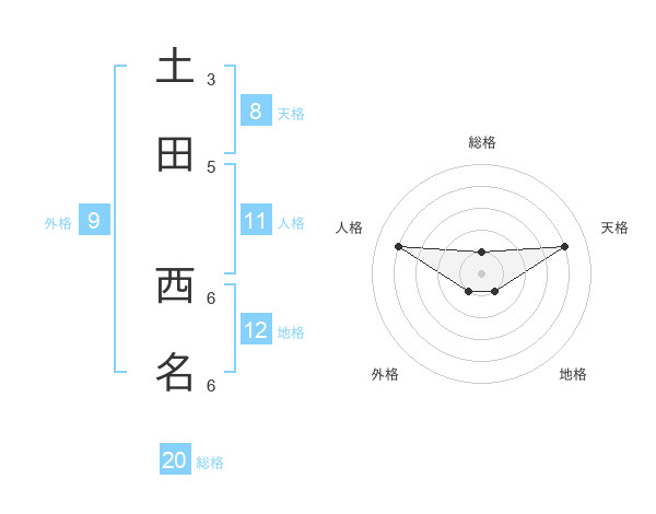 占い結果は姓名判断である以上、良い場合も悪い場合もありますが、決してお名前を誹謗中傷するものでなく、画数の自動計算によって得られたものです。また、本サイトの検索によって得られた鑑定結果で、第三者を誹謗中傷したり名誉を棄損するような行為を禁じます。