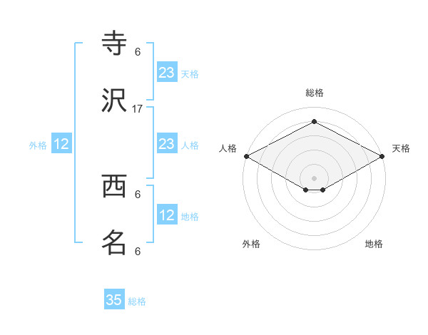 寺沢 西名さんを姓名の画数から五運を鑑定