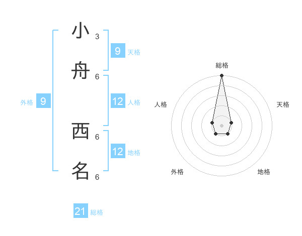 小舟 西名さんの総格は21画の5点!