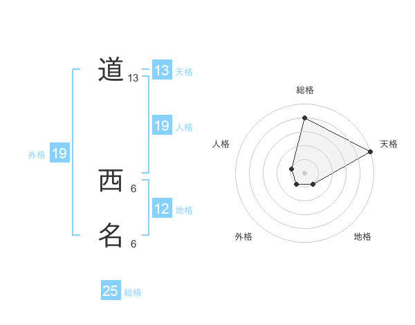 道 西名さんの天格は13画の5点!