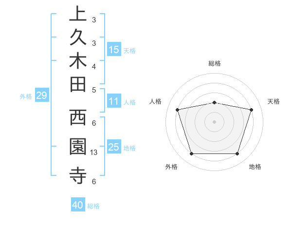 上久木田 西園寺さんの総格は40画の2点