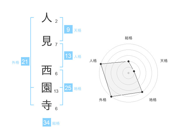 人見 西園寺さんの外格は21画の5点!