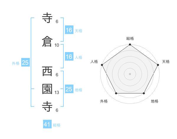 寺倉 西園寺さんを姓名の画数から五運を鑑定
