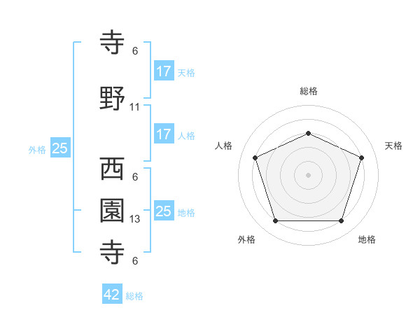 寺野 西園寺さんを姓名の画数から五運を鑑定