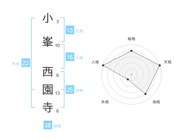 小峯 西園寺さんの天格は13画の5点!