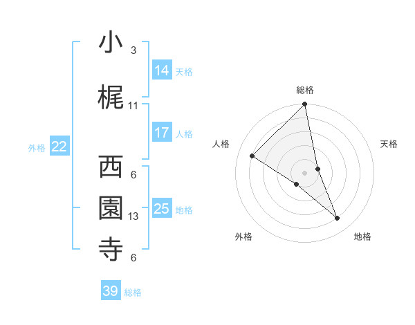 小梶 西園寺さんの総格は39画の5点!