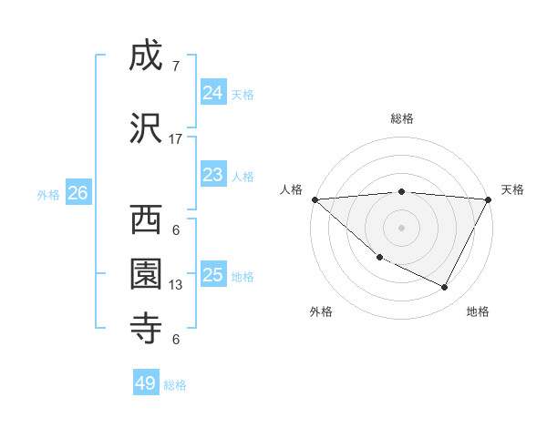 成沢 西園寺さんの総格は49画の2点!