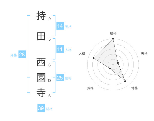持田 西園寺さんの総格は39画の5点!