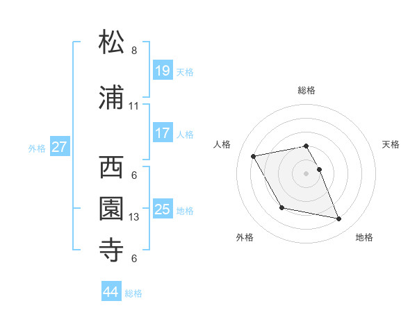 松浦 西園寺さんの総格は44画の2点