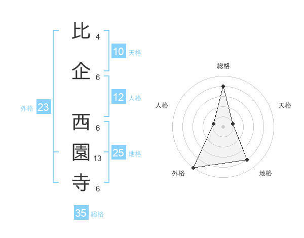 比企 西園寺さんを姓名の画数から五運を鑑定