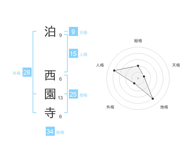 泊 西園寺さんを姓名の画数から五運を鑑定