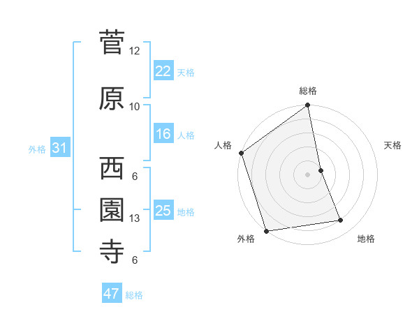 菅原 西園寺さんを姓名の画数から五運を鑑定