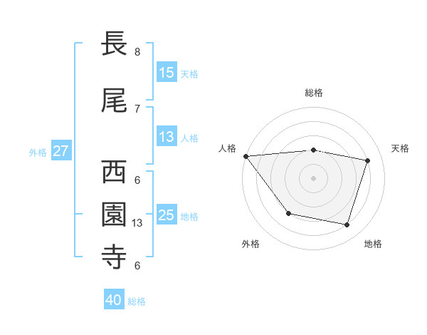 長尾 西園寺さんの総格は40画の2点