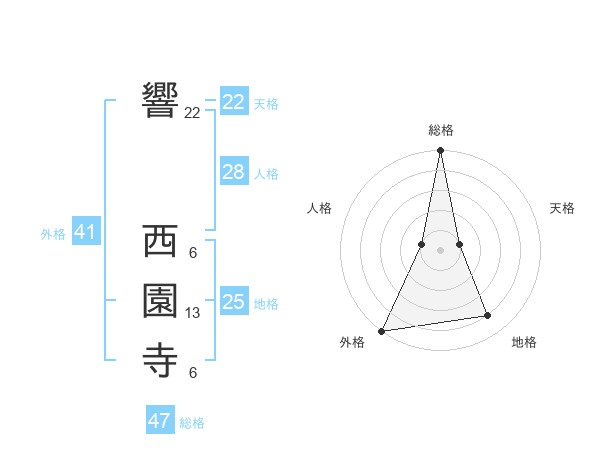 響 西園寺さんの外格は41画の5点!