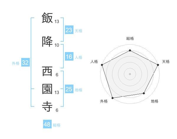 飯降 西園寺さんを姓名の画数から五運を鑑定
