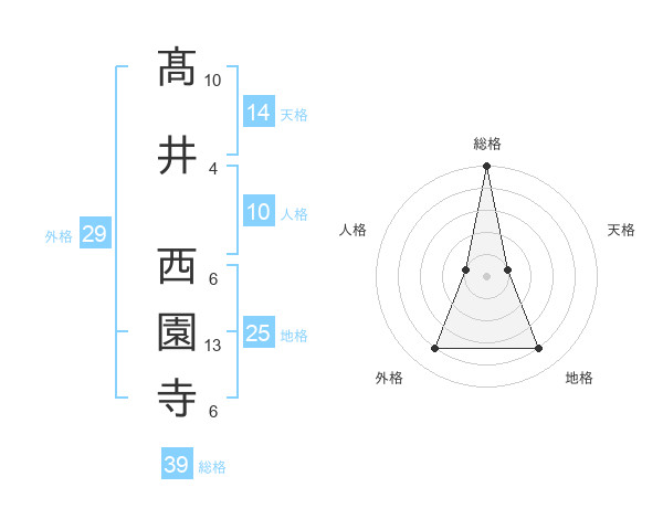髙井 西園寺さんを姓名の画数から五運を鑑定
