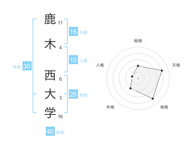 鹿木 西大学さんの総格は40画の2点