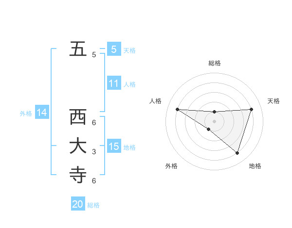 五 西大寺さんの総格は20画の1点!