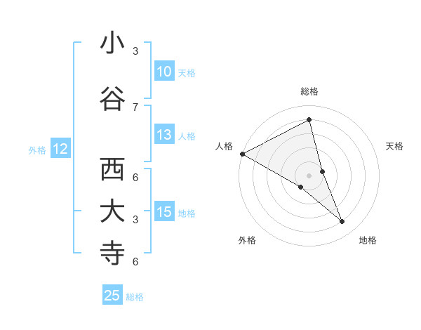 小谷 西大寺さんを姓名の画数から五運を鑑定