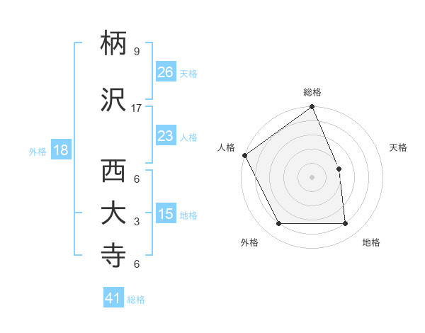 柄沢 西大寺さんの総格は41画の5点!