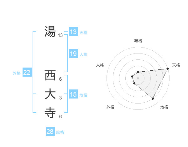 湯 西大寺さんを姓名の画数から五運を鑑定