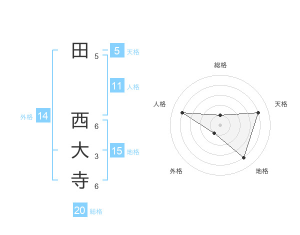田 西大寺さんの総格は20画の1点!
