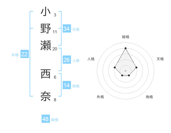 小野瀬 西奈さんの総格は48画の4点!