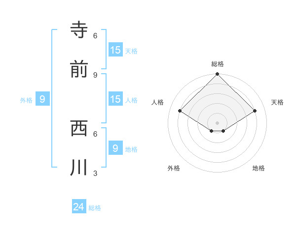 寺前 西川さんの総格は24画の5点!