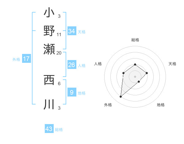 小野瀬 西川さんを姓名の画数から五運を鑑定