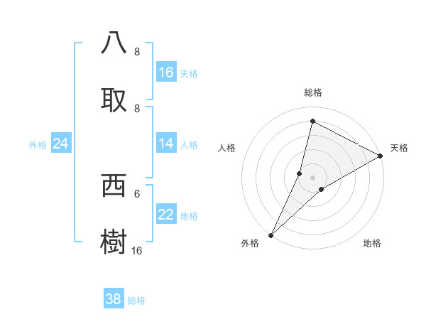 八取 西樹さんの総格は38画の4点!